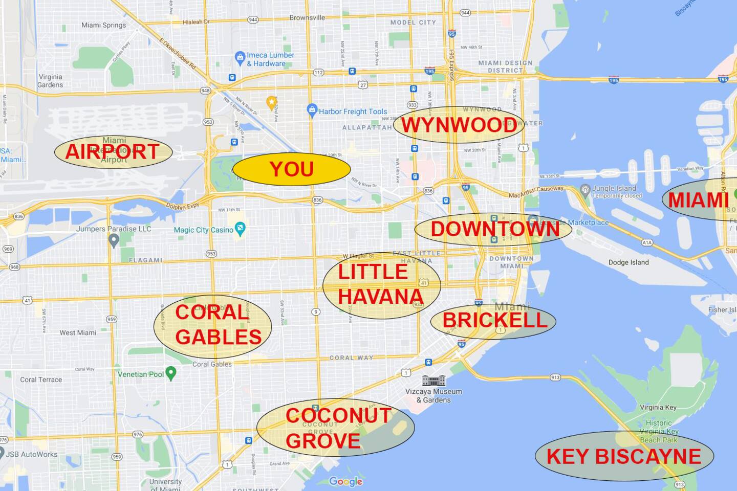 One mile off the Airport, minutes from the Miami River, Calle Ocho, Coral Gables, Miami Beach & Brickell